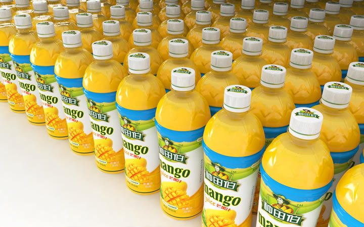 2、好的包裝不僅要要重視對消費者的刺激色彩的使用,也要注意識別顏色的指導(dǎo)作用。不同成份的產(chǎn)品及其包裝也反映在不同的顏色上。本產(chǎn)品瓶貼做到了色彩與果汁成份相統(tǒng)一。芒果汁的包裝瓶帖以橙色系為主,藍莓汁以紫色調(diào)為主,這樣更容易做到對產(chǎn)品功能的體現(xiàn)和區(qū)分,有助于增強消費體驗感。